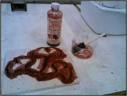 El tinte de anilina era base de alcohol. Usé agua Titebond III pegado al garantizar la incrustación.