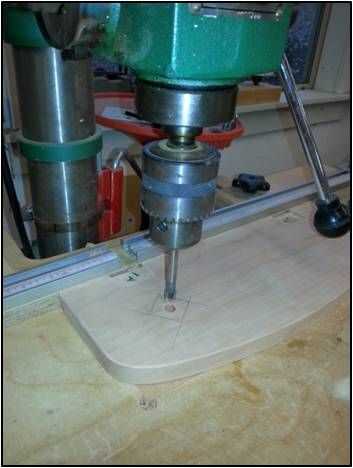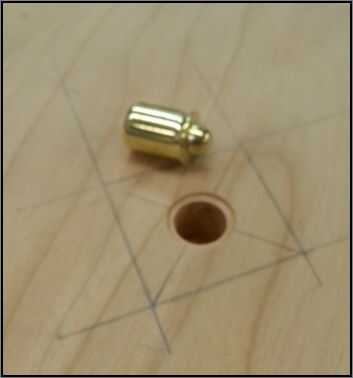 Utilizar un pieza Forstner de 3/8" y perfore un agujero de ½" profundo.