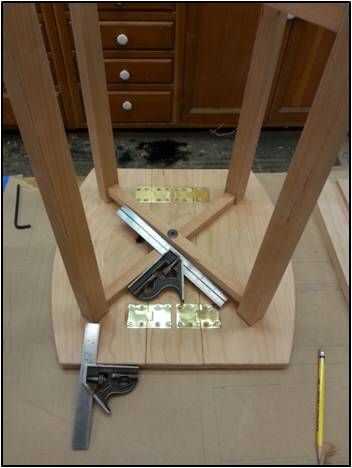 Con las piernas adjunta a la parte superior de cada tabla de anidación, separó las piernas para que se espacian uniformemente a lo ancho de la mesa y 90 grados entre sí.