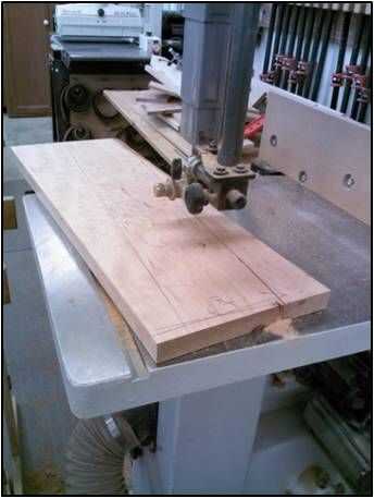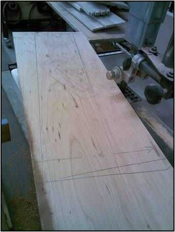 Para la mesa principal, he seleccionado un trozo de madera que requiere un corte diagonal para obtener el grano para orientarse en la dirección correcta. Me marca la pieza correspondiente y luego utiliza la sierra para cortar la pieza que quería rectangular.