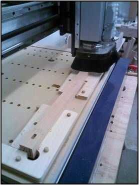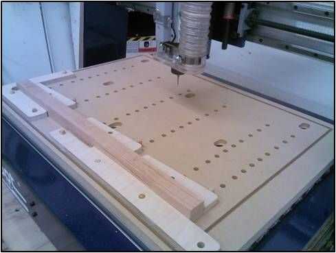 Yo utiliza cuñas para fijar las patas a la base del sacrificio de CNC.