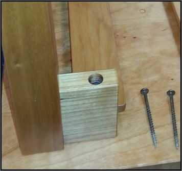 Perfore un agujero de 9/64" centrado en el orificio de ½" a través de la plataforma. Los orificios son de gran tamaño para permitir el movimiento estacional de madera en la parte superior.