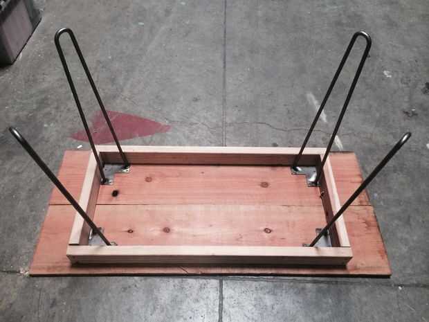 Coloque cada pata cuadrada, dentro de su marco y tornillo en sus piernas una a la vez.