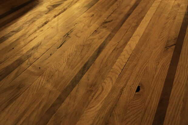 Hubo un par de tiras que tenía terminó unos mm más bajo que los otros por lo que pegué en unas tiras de chatarra de roble para llenar la diferencia entonces lija estos volver al ras.