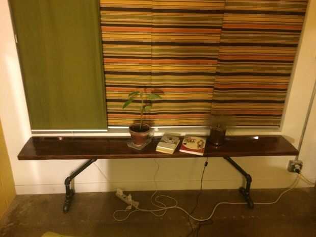 Por lo tanto, muchas personas han publicado muy similar ' ibles sobre el uso de tubos de plomería y madera para crear mesas, bancos, etc.. Bien, aquí es mío. Tenía un pedazo grande de madera de un proyecto anterior en mi cobertizo, y ganas de hacer algo de espacio, decidí hacer una mesa angosta para ir a lo largo de un gran ventanal en mi salón. Realmente ató la sala de juntas.