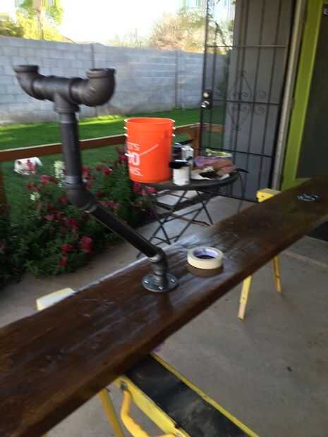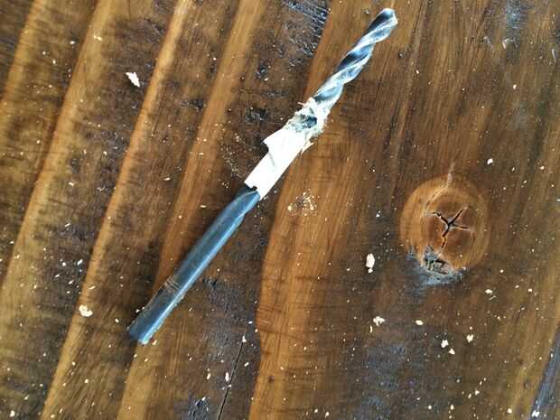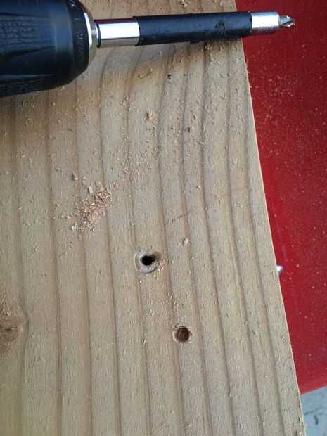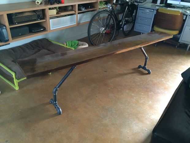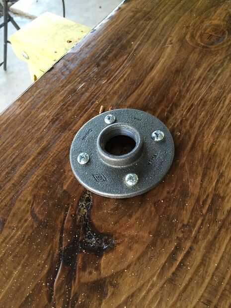 Mide la longitud de la pieza de madera para obtener una medición exacta y divide ese número por la mitad. Esto me dio la mitad de la Junta en márgenes de 3' 5". Luego a la mitad de ese número y medida desde cada extremo de la tabla para obtener la posición para la colocación de las piernas (básicamente dividiendo el tablero en 4 secciones). Coloca una marca pequeña en el lugar y retirar la pieza de la brida de tubería desde el final de la primera etapa y posicionado donde quería perforar orificios para tornillos de mi. He probado la broca primero en un pedazo de madera que tenía una profundidad similar para poder marcar la broca con cinta y asegúrese de que no se perfore de mi buen pedazo de madera. Luego usé los agujeros en mi reborde de la pipa como una guía para mis orificios. Después de la perforación del primer agujero iba adelante y jodido en mi primer tornillo. Esto ayudaría a asegurar que la brida no se movió cuando perforan el segundo agujero. Perforó un segundo agujero en el lado opuesto de la brida del primer agujero y coloque mi tornillo. La brida ahora era segura y siguió adelante y perforados y atornillada en la final a los agujeros. Hacer esto para ambos lados.