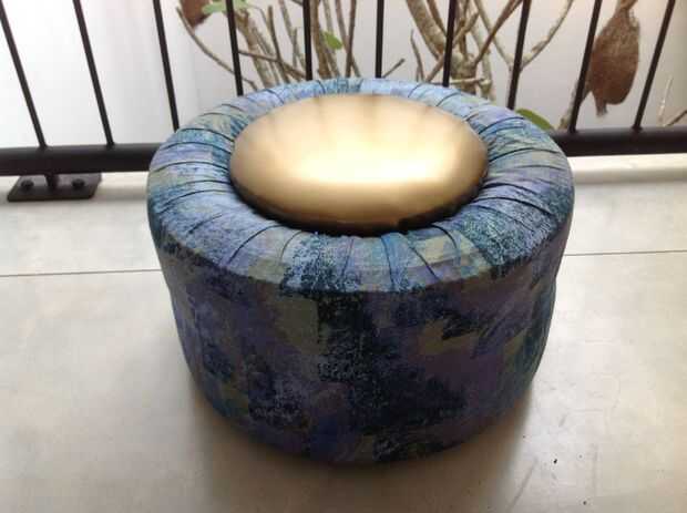 Neumáticos usados de rodador tres, apilar 2 para obtener una altura adecuada para los niños. Apilar las llantas... desde donde los dos neumáticos están tocando dos puntos marcados en ambos los neumáticos les perforaron. Después de eso con perno y tuerca se unió a ambos los neumáticos... a estar en el lado más seguro después de apretar, pega las tuercas! (entre los neumáticos apilados horizontalmente habrá un pequeño canal llenar que usé tela tiras de cinta opcional n papel). Después de asegurar tanto los neumáticos con seguridad, perforar 2 orificios en la parte superior los neumáticos apilados y 4 agujeros en la parte inferior. Los orificios deben estar más cercanos del borde del círculo interior de la llanta. La tapa y el fondo fueron cortadas de la madera de 1/2". El diámetro de las piezas de madera debe ser ligeramente más grande que el diámetro del anillo interior (la tapa y el fondo deben ser capaces de cubrir los orificios perforados en el neumático)!!. Para perforar los círculos de madera, forma conveniente es mantener los madera círculos debajo de los neumáticos, manteniendo la posición correcta y de la marca a través de los agujeros de la llanta en piezas de madera y les. 2 agujeros en la tapa y 4 agujeros en la parte inferior.