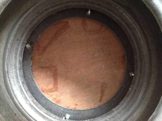 Para la cubierta, conseguí a una tela áspera, por lo que sería duradera incluso después de muchos lavados... que son inevitables en una sala de juegos! Medición alrededor de la llanta y además tomando 1/2" de los dos extremos para margen de costura. Únete a los extremos y dejar 1/2" y stich se. Para el ancho toma del círculo interno del neumático superior al círculo interno del neumático de fondo. coser un dobladillo en ambos lados para poner un elástico o cuerda para apretar. Hacer pequeños agujeros en la tela para dejar a través de los pernos.
