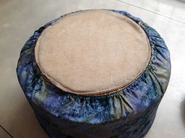 En cuanto a la parte inferior, debemos pegar los pernos del mismo modo en cuanto a la tapa pero las tuercas debe fijarse firmemente dentro de los agujeros de la llanta. Así que no sería quitar o sacudir cuando otomano. Por razones de seguridad, no utilizó las ruedas para la parte inferior (estaba justificado cuando mi hijo menor comenzó un juego de saltar de una otomana a la otra...! :)!). Así que pega un viejo grueso pedazo de manta con el mismo diámetro como el círculo de madera de abajo para salvar la planta y para la movilidad fácil. Material de la alfombra sería ideal (en aquel momento que no he podido conseguir el asimiento de cualquiera!).