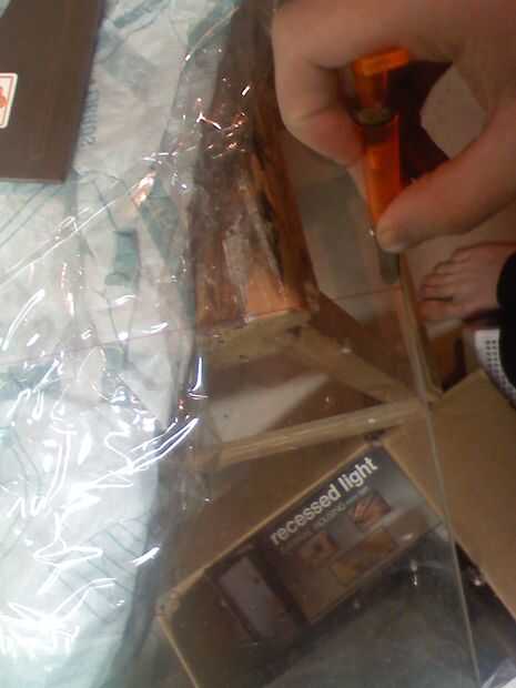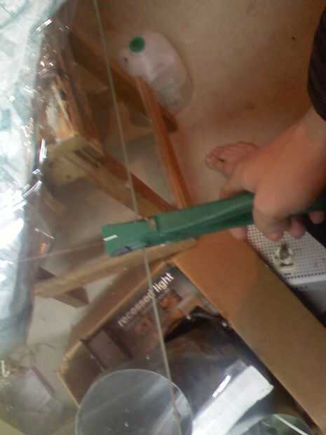 Con mi regla y el rotulador sacar el tamaño de la placa de vidrio que necesito. Luego cuidadosamente marcar el vidrio y utilice pinzas especiales para romper el vidrio en la línea de puntuación.