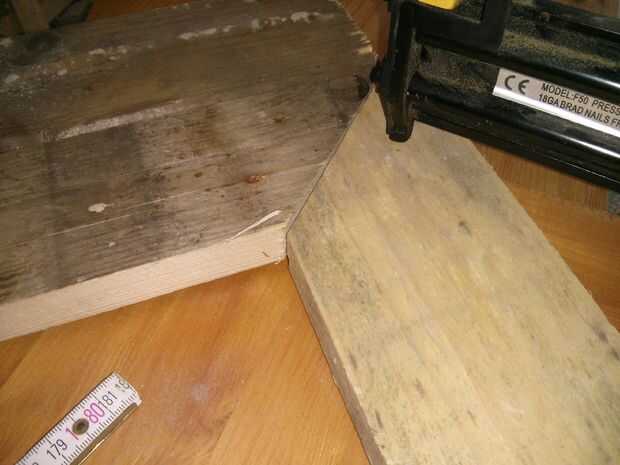 Cuando estaba satisfecho con el arreglo de los tableros, yo pegado y había clavado a la hoja soporte.