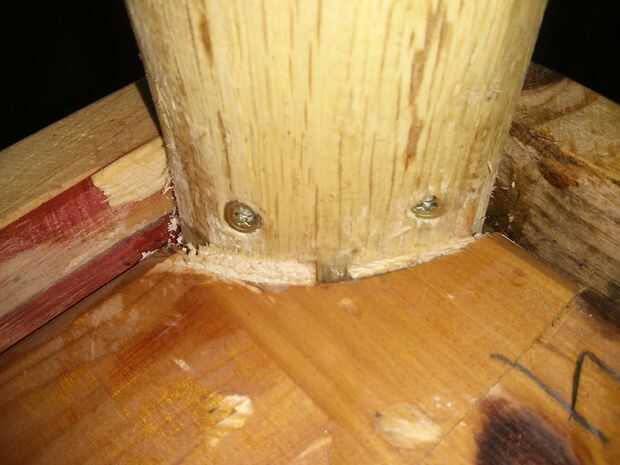 Comencé a taladrar y cincelar al panel de soporte para obtener un poco más de profundidad y estabilidad. Luego agregar pegamento a los agujeros, introduce las piernas y que eran cuadrados con la mesa. Una vez que fue hecho, usé calzas para obtener las piernas contra la estructura. Luego había pretaladrado 2 agujeros en cada pierna y había atornillada en la estructura de soporte.