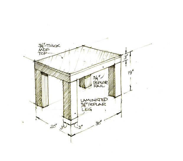 Porque la tabla está pintada, se podría construir en su totalidad de fibra de densidad media (MDF), pero se podrían obtener una tabla que es dos veces más pesada que la versión de álamo. Una opción más ligera de panel es contrachapado, pero sus bordes no son tan uniformes como MDF y requiere más presentación y lijado.