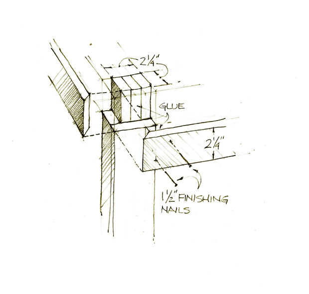 Rip stock a 2 1/4 pulgadas de ancho de los carriles. Los extremos en un ángulo de 45 ° de inglete y asegúrese de que enfrente de rieles son exactamente la misma longitud. Si no tienes equipo de energía para ingletes exacto de corte, puede hacerlo a mano, o simplemente cortar las piezas a escuadra y utilizar empalmes de tope. Pegamento uñas cada riel corto a dos patas y use una escuadra de enmarcar para comprobar que las patas son cuadradas a los rieles. Cuando el pegamento ha fijado, añadir los rieles largos. Comparar las mediciones diagonales opuestas a través de la tabla base para asegurarse de que la Asamblea esté a escuadra. Si es necesario, virar una franja diagonal en la parte superior para mantener las cosas en su lugar mientras el adhesivo se seque.