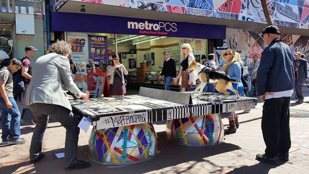 Otro objetivo que utilizando la tabla como un lienzo de arte, que permitió a artistas locales para el diseño de una pieza que resonaba con la comunidad. Como una obra de arte haciendo una declaración política positiva, el público lo había respetado y quedaron las paletas y pelotas para que todos puedan utilizar.