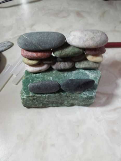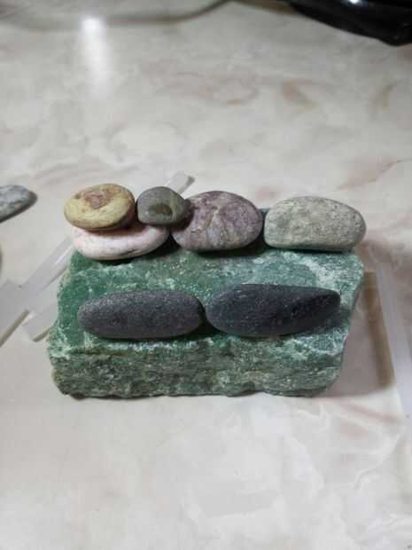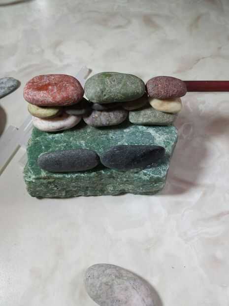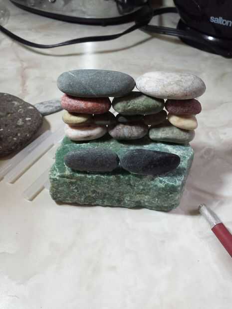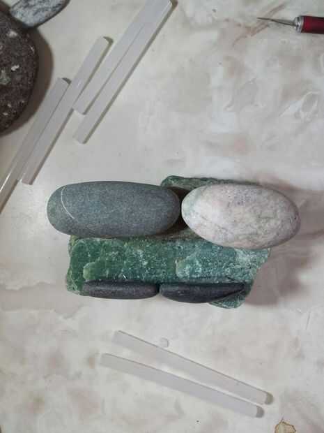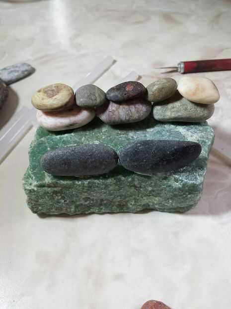 Ahora viene la diversión parte, hay que buscar una agradable combinación de piedras que son aproximadamente del mismo tamaño y tienen bonitos lados planos para pegar.