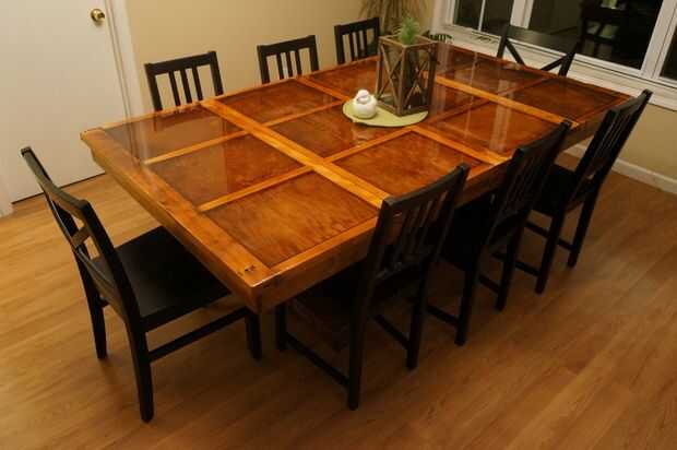 Arrojó alrededor de varias ideas sobre cómo llenar los bolsillos empotrados de las secciones de la puerta. El primer pensamiento fue llenar con hormigón y moler y pulir la superficie tan como una encimera de hormigón. Sin embargo, si lo hice, cubriría más de la hermosa veta de madera. Así que me decidí por una transparente de epoxy. Debido a esta decisión, descubrí cuánto epoxy es necesario para llenar los huecos y cubren una total de 48 "x 83" la tapa de tabla, y también lo caro es! A veces, encontrar la solución adecuada a los materiales de upcycle le costará más dinero que solo compra unos nuevos, pero Dónde está la diversión en eso? No creo que nunca podría comprar una mesa hecha de una puerta de garaje en las tiendas de muebles de mega.