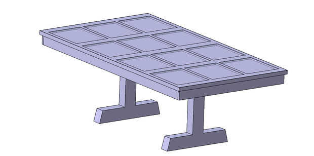 Presentado la idea general de la tabla en CATIA - sí sé un poco de exageración en el software de CAD, pero bueno, es lo que hago para vivir por qué no!?  En realidad utilicé el modelo CAD para calcular la cantidad exacta de Epoxy que necesitaría.  Tuve la opción de sólo dejando las dos secciones en su longitud (8') y usarlas al lado, o que podía cortar las secciones por la mitad y tope contra uno con el otro.  Dejarlos durante mucho tiempo y al lado hacen una tabla realmente largo flaco mientras que cortar ellos y apilamiento ellos extremo a extremo hecho para una mesa semi-really-largo y ancho.  Apilarlos también permitieron más simetría debido a cómo se hicieron estas puertas de garaje. -ver fotos de la explicación.