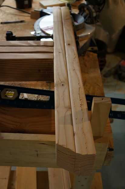 La 2 x 4 que compré fueron pino rojo por lo que correspondería con el de pino rojo de la puerta del garaje. Hizo todos los cortes y pegados y atornillados los juntos. Una vez que fueron, incendiaron a los! Hace unos años había surgió una manera (probablemente no soy el único que lo ha hecho) a dimensional de madera suave textura y edad.