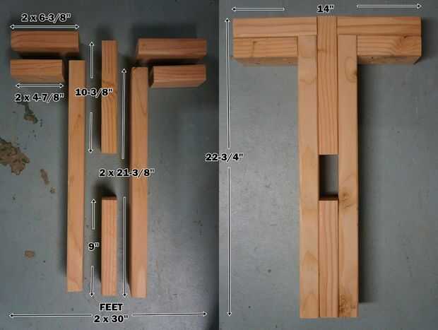 Averiguar qué estilo de piernas para hacer era el siguiente paso. Pensé en post regular piernas, piernas angulares, piernas de pedestal, incluso piernas de tensegridad. Finalmente mi esposa me mostró un maravilloso Cómo hacer una mesa de casa de campo. Las piernas eran perfectas! (y muy fácil de hacer!) Gracias Ana blanco! En su mayor parte he copiado lo que había hecho, pero hice algunas modificaciones a la mía. Las dimensiones variarán según la aplicación, pero he incluido mina para referencia.