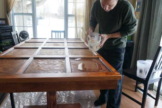 Una vez que todos los bolsillos se llenaban completamente, noté que cuando había lija en las costillas, había sumergido la lijadora de banda un poco en algunos de los lados y el epoxi fluía en esos bordes bajos, borrando así cualquier crujientes bordes limpios de epoxy a costilla. ¿Mi solución!? Vierta epoxy más sobre el nivel del conjunto mesa haciendo todo uno. Funcionó, pero fue un día L O N G y yo estaba lindando con locura tratando de asegurar todas las burbujas fueron quitadas y fueron de todas las superficies de nivel. Yo también fui persiguiendo goteos de los lados de la mesa ya que yo no molestaba a preocuparte de barreras para contener el epóxico en los bordes. Agregar la capa superior de epoxi necesaria casi otro total de galones, usé cuando todo el proyecto fue acabado 7 galones de epoxi! Al final, valió la pena ya que el acabado de los granos de madera * pop * más.