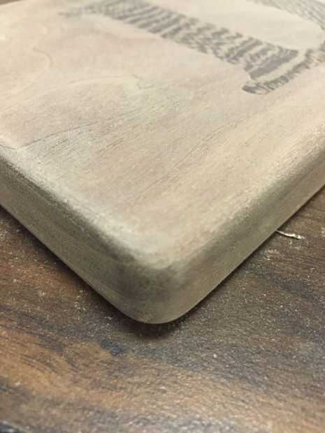 Usando una lijadora de Palma, luego lijar el embutido al ras con la superficie de la tabla de cortar. Luego sujeta la Junta hasta una mesa y lijar todos los bordes hasta que fueron muy bien redondeados. Cada vez que estoy de lijado me aseguro de tomar mi tiempo. Es muy fácil de tomar demasiado apagado y no se dan cuenta hasta mucho más tarde. Así se pausa mucho y siento el trabajo que haces. Sorprendería cuánto detalle se puede recoger por tomarse su tiempo. La parte más difícil de este paso es saber cuándo parar, para que no tengas miedo a dejar el papel de lija.