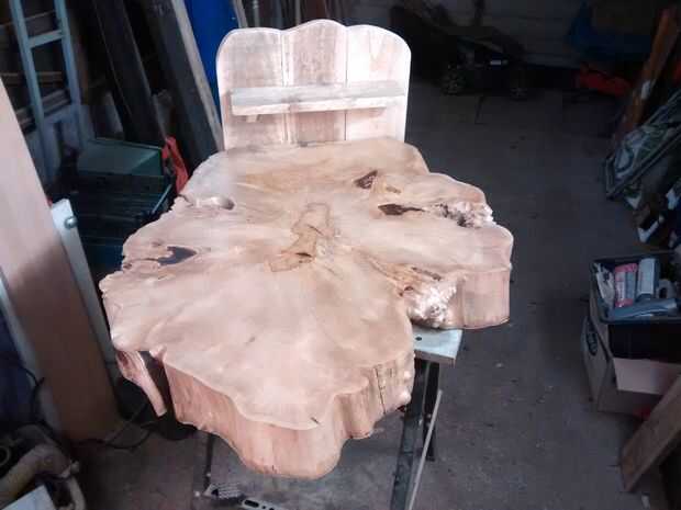 Para ocultar el feo corte lateral, usé un poco de madera de palet para hacer una plataforma rugosa en la parte posterior. Esto tiene una capa de aceite danés demasiado, aunque si puedo encontrar un lugar para colocar esta contra la pared, estante de puede ir.
