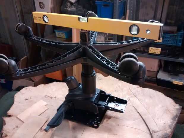 Debido a un inminente movimiento de casa que he tenido que posponer este proyecto - como era tan pesada aunque no quiero que se dañen transportados. Así que había montado en la base de una vieja silla de oficina para el transporte fácil. Si no fuera una base plástica tan fea entonces sería probablemente guardo así, como llega tan fácilmente.