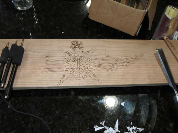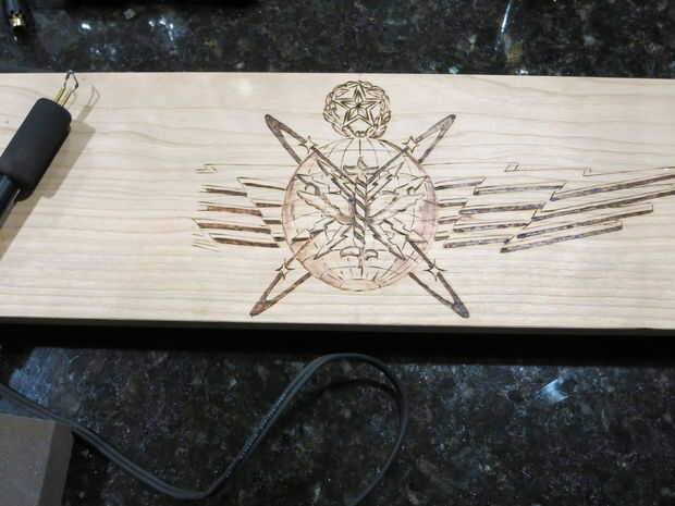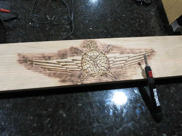 El faldón delantero también muestra una insignia de especialidad. No entraré en el detalle de cómo quitar un pyrograph aquí, pero tengo algunos otros ejemplos en mi perfil.