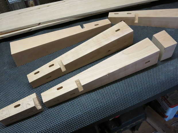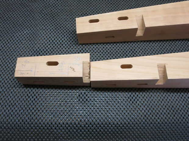 La forma más sencilla que pude hacerlo fue cortando el top 5" de las piernas (derecha al fondo de las muescas originales), y tomando el resto del espacio muerto debajo del estante inferior. Contras: perdida de 7" de longitud de la pierna, 1/8 o menos de ancho, tuvo que volver a cortar muescas de dominó. Pros: cliente contento... en fin fue una modificación fácil de hacer.