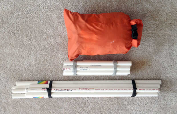 Este diseño de una tabla es lo suficientemente pequeño para llevar en mi mochila o equipaje y es rápido para fijar y tomar. Está construido alrededor de un marco de PVC con uniones de ajuste deslizante.