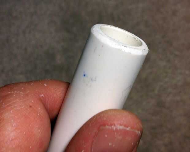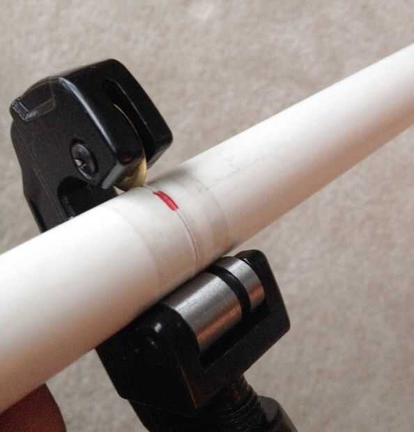 Cortar el PVC a la longitud correcta con un cortatubos rotatorio, a fin limpios, cuadrados.