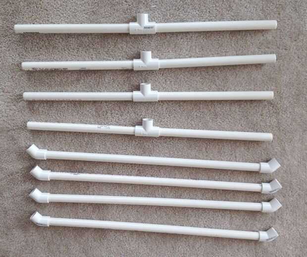 (2) 4 lados se hacen de 24" longitud y 4 lados se hacen con 2 de 12" largo piezas a ambos lados de una Unión en T.