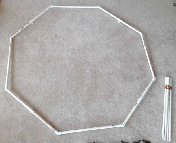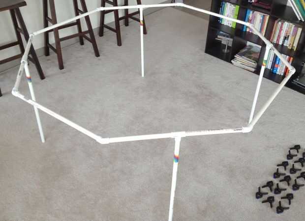 (3) Conecte los lados adyacentes del Octógono con los codos de 45 grados. Alternar las piezas largas y los lados montados de las uniones en T, hasta que haya completado la forma de octágono.