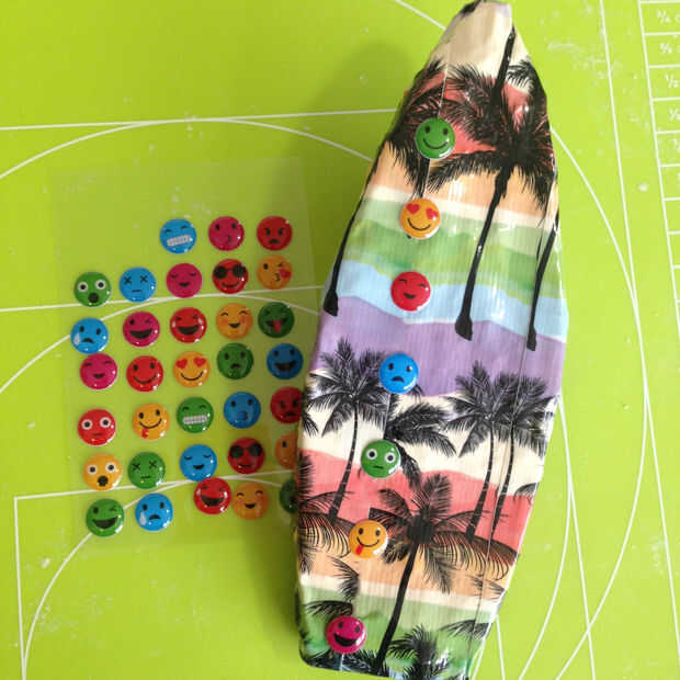 Embellecer la tapa como se desee, utilicé botones emoji dimensional, autoadhesivos