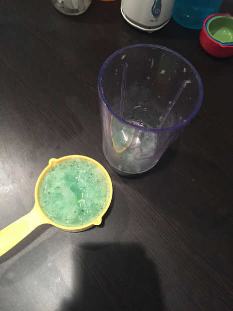 • Tome la tapa de la batidora y vierte la mezcla mezclada en
