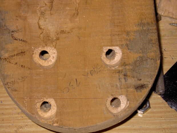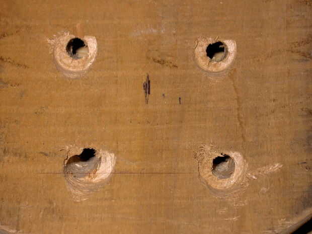 2. Con el molino de cajeado, hacer Avellanadores para las cabezas de los tornillos, que no tiene el diámetro adecuado, solo madera removedor de los bordes de los agujeros hasta las cabezas de los tornillos de fija derecha