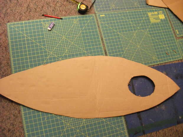 4. cortar la primera hoja de cartón según la Vista ortográfica, con la navaja.