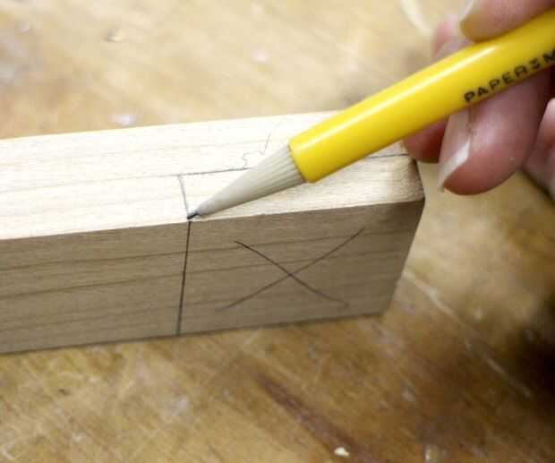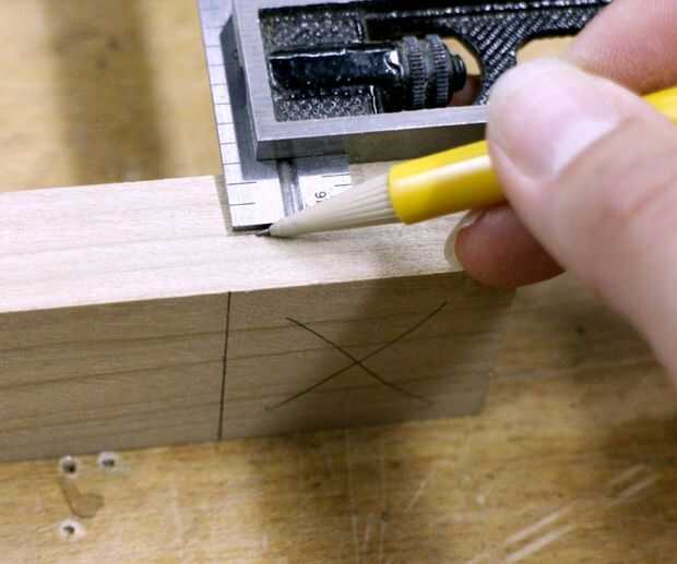 Utilizando una regla o un cuadrado, dibujar una línea 1 1/2" hasta del extremo en el lado marcado.