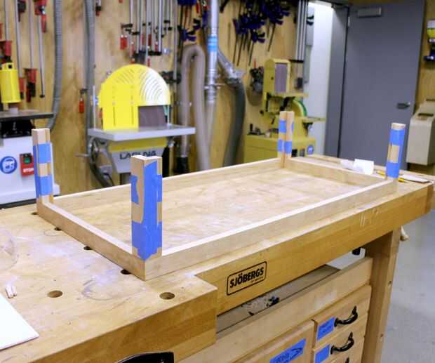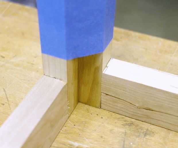 Tirón encima y deslice los montantes de esquina en su lugar. (Esto puede hacerse cuando los montantes están secando si usted ha grabado los suficientemente apretada.)