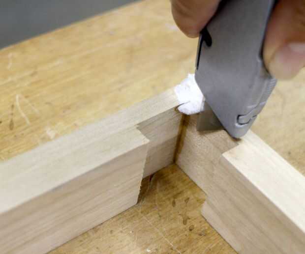 Una vez que ha secado la parte inferior del marco, quite las abrazaderas, dale la vuelta y limpiar cualquier derrame de pegamento con un cuchillo.