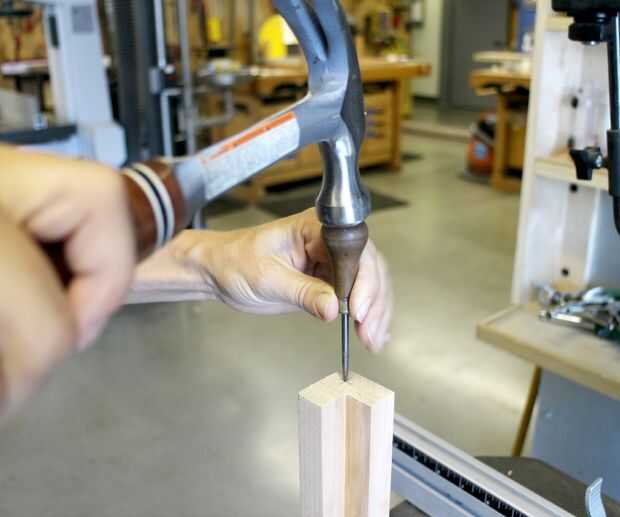 Hacer un agujero piloto para la broca usando un punzón y un martillo.