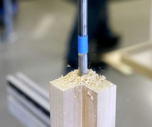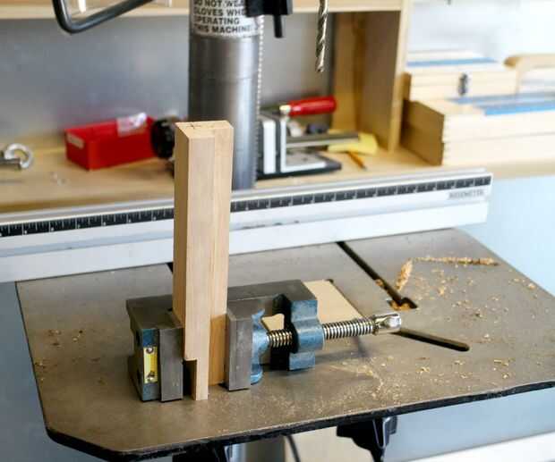 La forma más fácil de perforar en el extremo de un pedazo largo es un pequeño vicio maneras de lado y fíjela firmemente. (Pero no demasiado cómodamente que mar la superficie de madera)