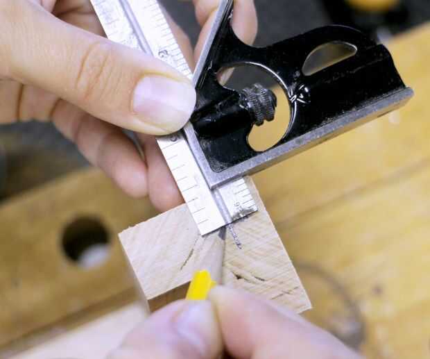 Encontrar que el punto central de la estructura vertical termina con marca de 3/8" de ambos bordes exteriores.