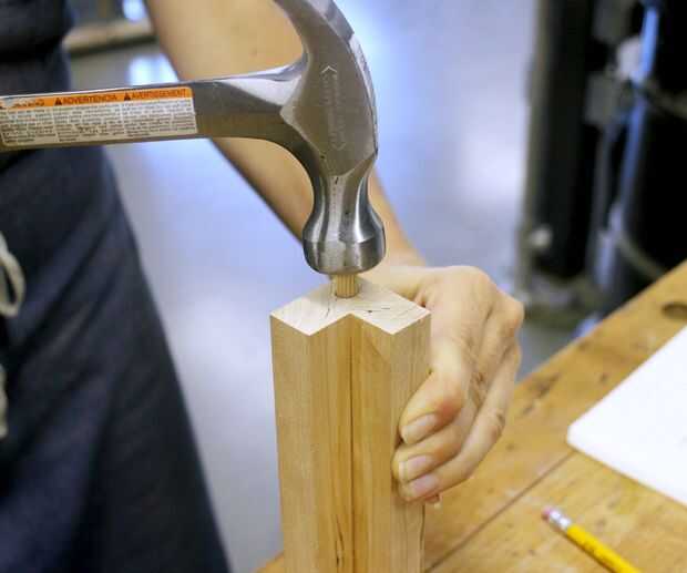Luego Martille cuidadosamente un pasador en cada vertical.
