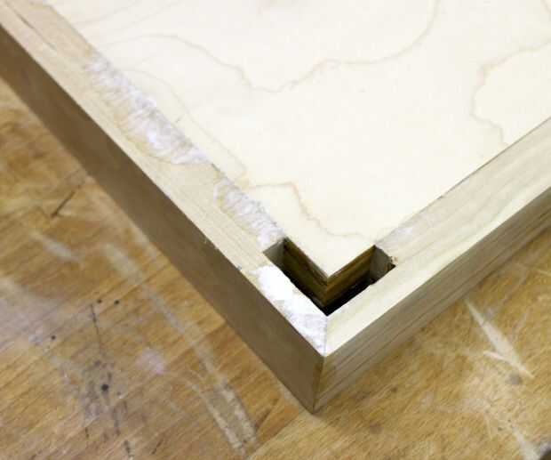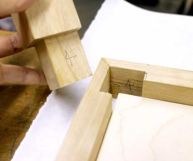 Una vez seco (1-2 horas o mejor de izquierda durante la noche si hay cualquier inclinación en la madera del marco inferior), dale la vuelta y arena lejos cualquier desbordamiento de pegamento seco.