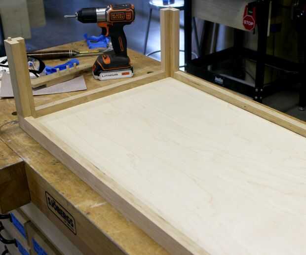 Medir el interior largo y ancho de su marco inferior y corte un pedazo de 3/4" A / madera contrachapada de alto grado B para adaptarse.