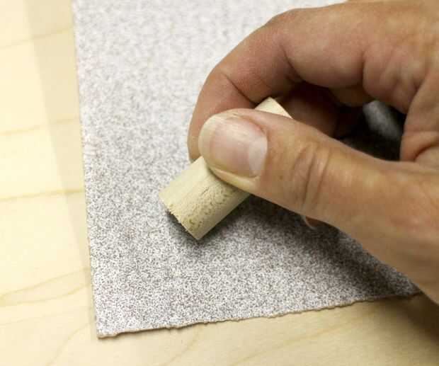Limpiar y suavizar los bordes de un trozo de papel de lija.