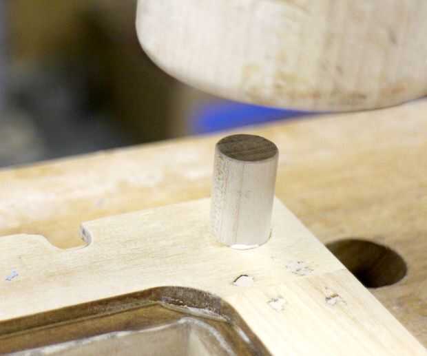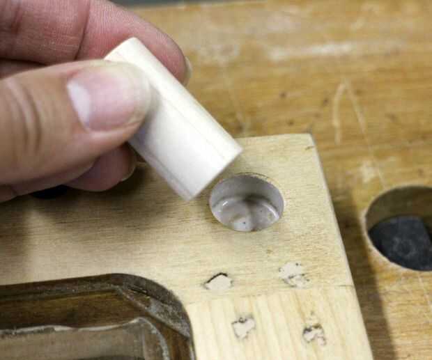 Encolar los tacos en los agujeros en la tapa de tabla.