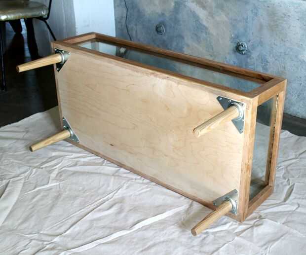 Enroscar en las patas y coloque la tabla en posición vertical en la lona.
